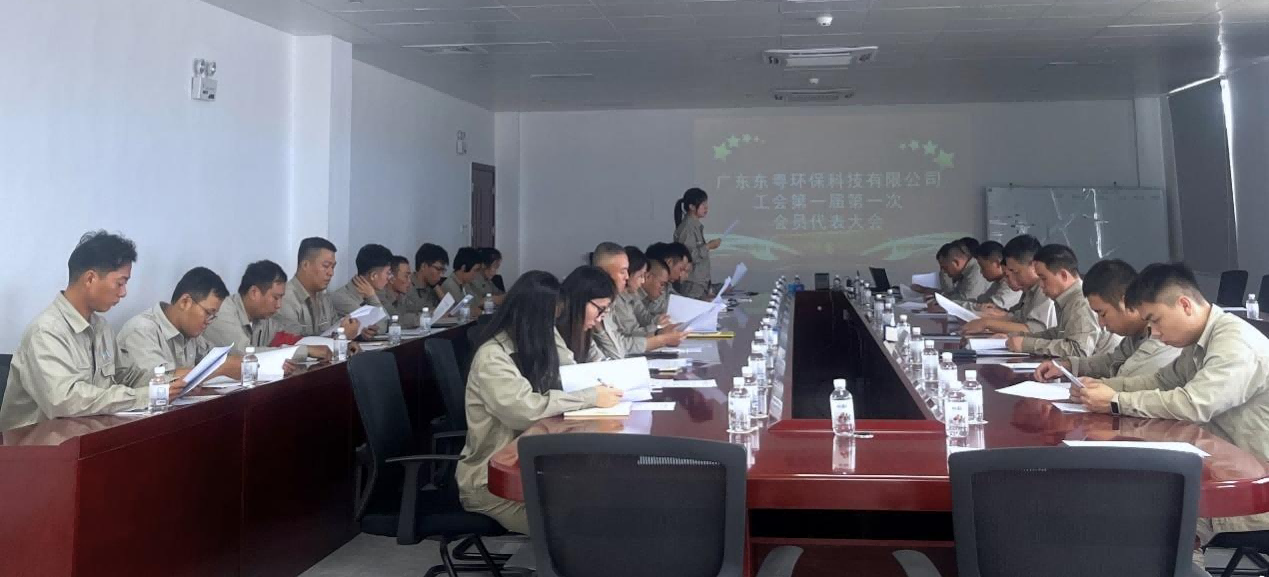 2023年10月14日下午,im电竞环保集团旗下子公司东粤环保工会第一届第一次会员代表大会顺利召开,公司总经理李恩泉、副总经理吴荣华、各部门工会会员代表参加会议。本次会议主题是选举第一届工会委员会和经费审查委员会。